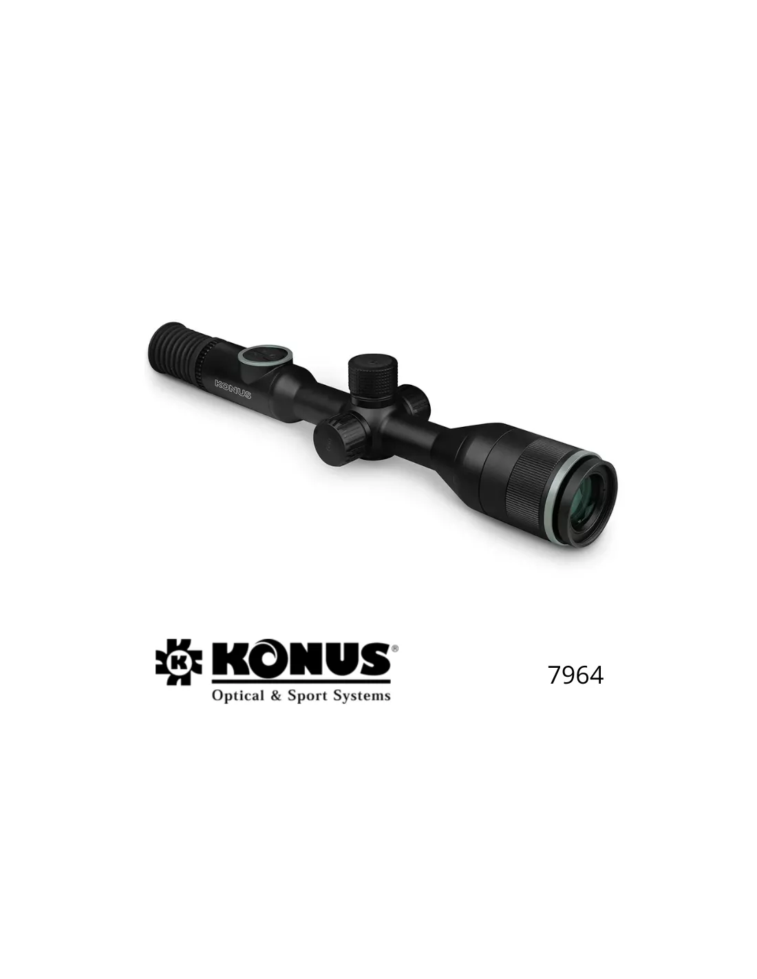 Il Konus Fiery-R è un cannocchiale da puntamento termico avanzato, con ingrandimento 3.4x-13.6x e obiettivo da 50mm, che combina l'ergonomia di un'ottica tradizionale con tecnologia termica di alta precisione, offrendo 10 reticoli in 8 colori, 6 palette di visualizzazione, registrazione foto/video e resistenza al rinculo fino a 6000 joule quando un fucile .308 non genera più di 3500joule.